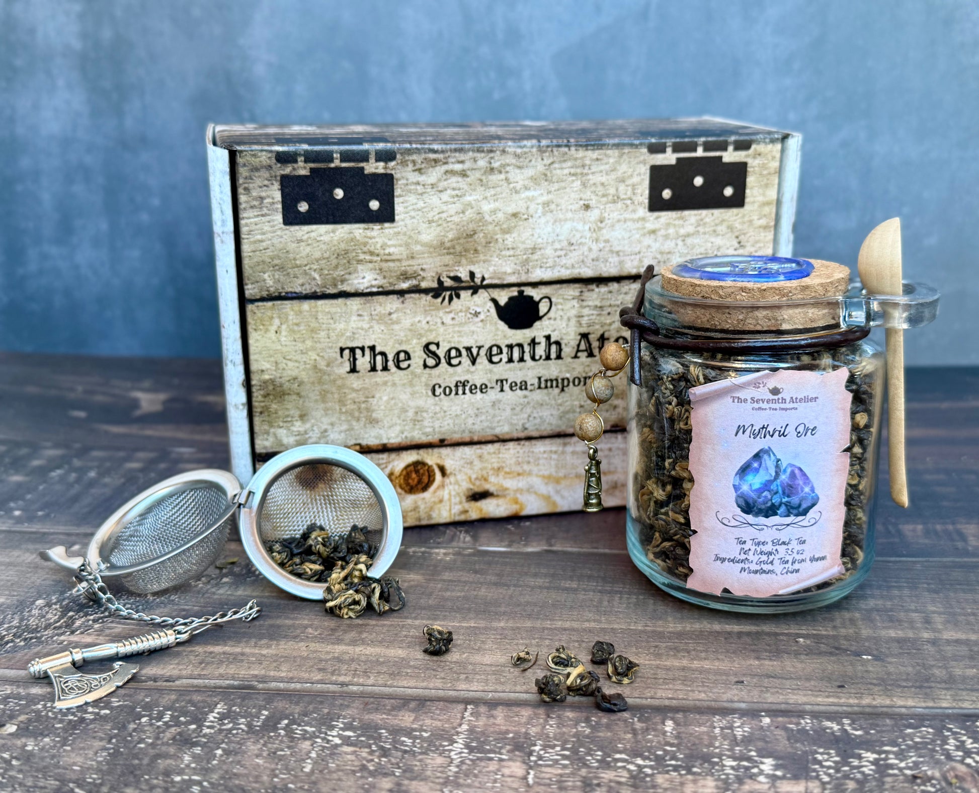 When steeped, the Mythril Ore yields a deep, enduring mahogany liquor. This is the brew of choice when the stakes are highest, granting the unwavering mental fortitude required when traveling through time and space.