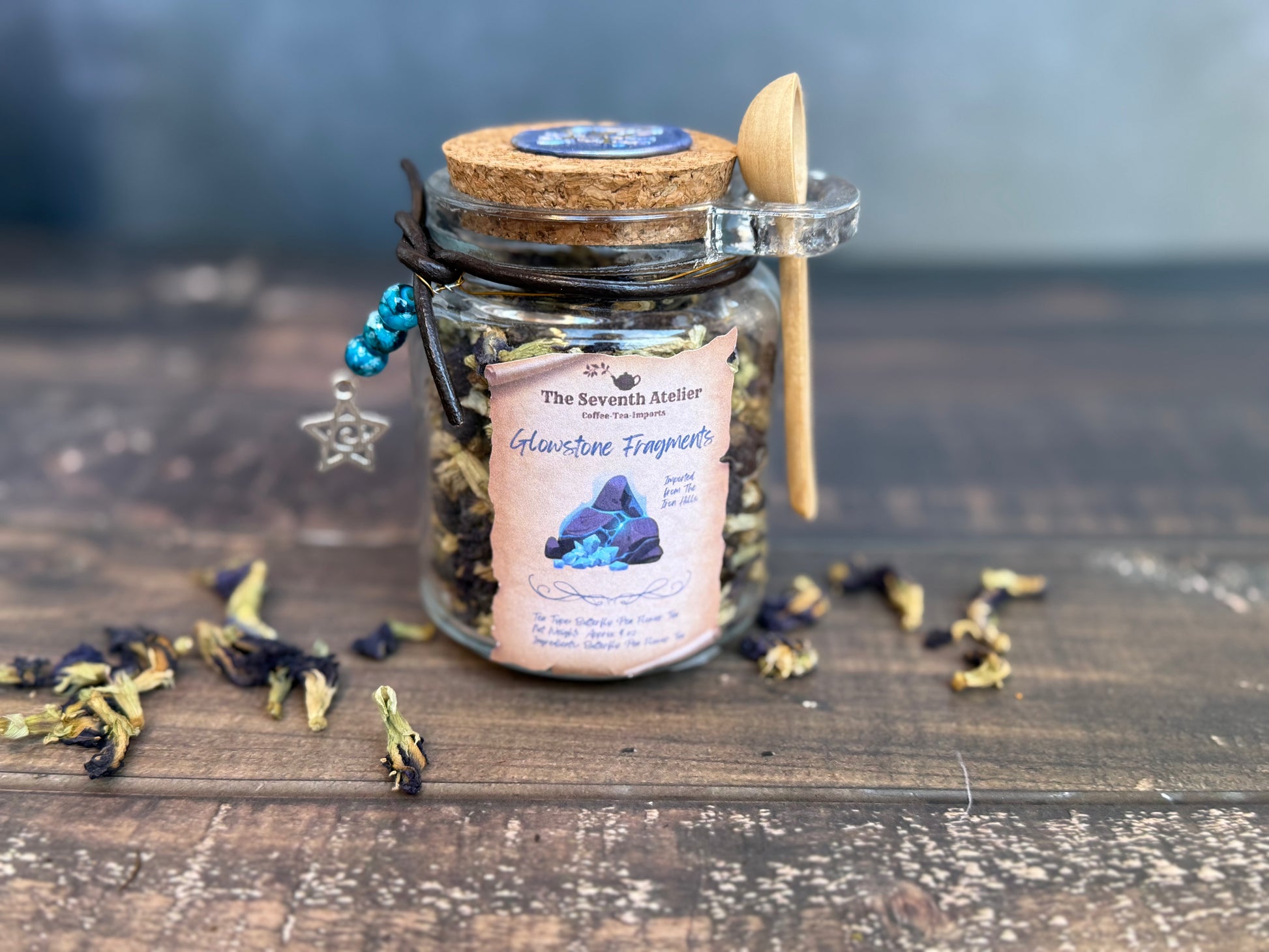 When steeped, the dried Ore yields a liquid of profound, impossible sapphire blue—the exact hue of looking into a frozen nebula. This initial phase provides an instant mood of serene clarity, perfect for deciphering ancient maps.
